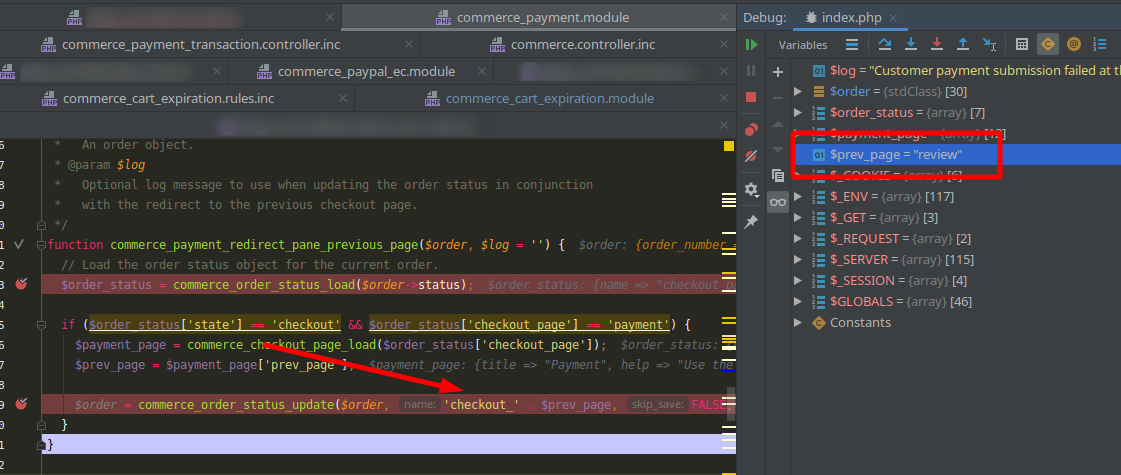 5. Enable xdebug and add a breakpoint at commerce_paypal_ec.module:821.